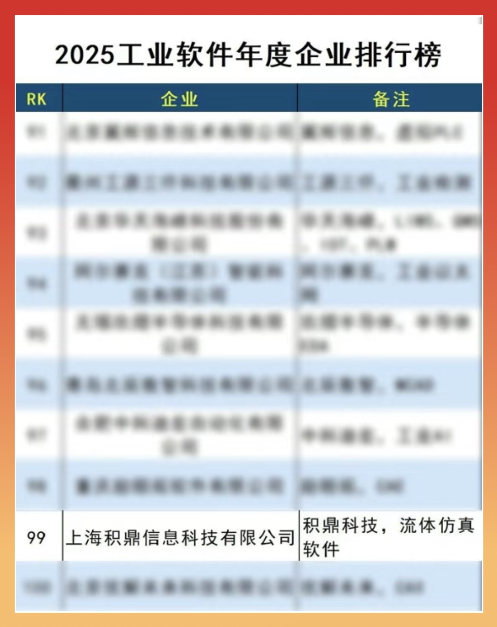 近日,由中国科学院主管、科学出版社主办的商业期刊《互联网周刊》(CIW)联合德本咨询(DBC)、eNet16发布“2025工业软件年度企业排行榜”。上海积鼎信息科技有限公司凭借引领行业的技术创新能力,通过算力提升与 AI 智能化技术迭代实现软件计算精度、效率与易用性的全面优化,以及在关键领域国产化替代优秀解决方案实践,成功入选。